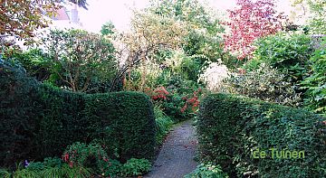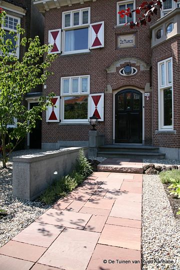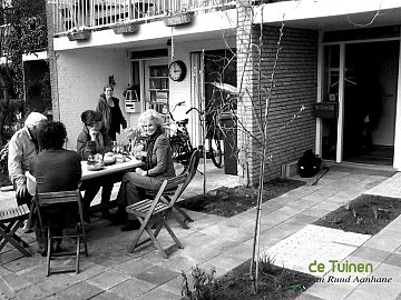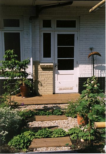 Als warm welkom hadden we een klein kneuterig voortuintje. Een grasveldje met een perk tulpen, groepjes hyacinten en een heg. Kijkend naar de foto’s uit mijn jeugd, zie ik mezelf staan in het bleke voorjaarslicht in ons aangeharkte tuintje, de haartjes gekamd, poserend in mijn mooiste kleren. Mijn moeder op haar paasbest trots aan mijn zijde. Met dank aan de badgasten...