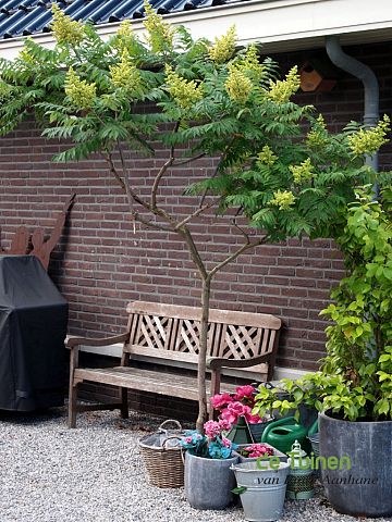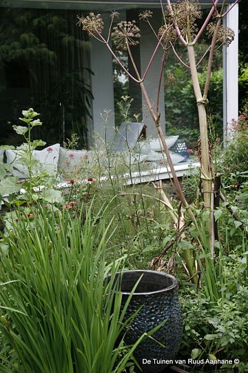 En zo sta ik, tuin- en landschapsontwerper, hovenier, groenprofessional zo u wilt, met een plant in mijn handen waar al tien jaar mee gezeuld is. Er is een nieuwe tuin gemaakt, rücksichtslos zijn de mooiste planten weggegooid, maar Tante Annie hield stand. Ze liet zich verzetten en drie keer opnieuw opkuilen en nu, nu het beplantingsplan is gemaakt en de planten worden uitgezet, loop ik al een half uur met Tante Annie te slepen. Steeds wanhopiger probeer ik haar in te passen: bij de Rhodo's, tussen de lavendels, ja zelfs achter de Taxus, zodat je haar echt nooit meer ziet. Dan besluit ik haar weg te gooien, maar ook dat kan niet.
