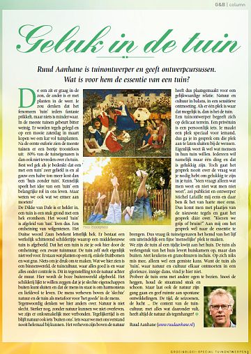 Hoe is het mogelijk! Waar zijn die ‘moderne’ strakke statustuinen gebleven? Is het uit sentiment, dat we dit weer mooi vinden? Willen we terug naar het gewone en natuurlijke? Met dank aan de crisis? Onze hernieuwde aandacht voor tuinieren staat niet op zichzelf. We willen weer meer zelf doen en zelf ontdekken. Net als in de jaren zeventig, maar met nieuw elan. Hoveniers zouden zich wat minder met trendy artikelen bezig moeten houden en meer met de basale zaken die een tuin tot een tuin maken: een plek omzoomd door een heg met een gazon en een perk planten. Gun je opdrachtgever het genoegen van de tuin ‘als tuin’ en laat oude tijden herleven met de ideeën van nu. Mét of zonder roomboter.
